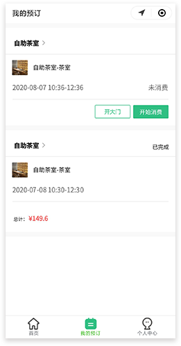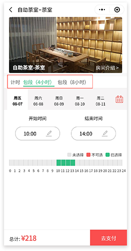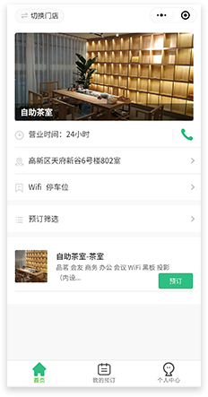 通过商家公众号进入小程序,自助预订包间/桌台
